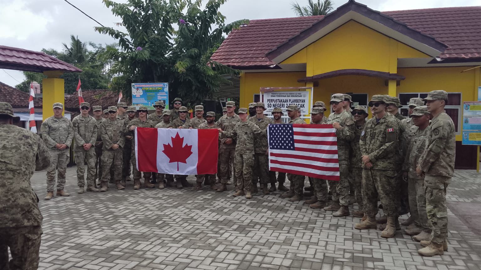 Bakti sosial renovasi SD Negeri 2 Tunas Peracak ini merupakan bentuk kolaborasi lintas negara. Tidak hanya melibatkan Tentara Nasional Indonesia (TNI), tetapi juga personel Yonzipur 2/SG, Yonzikon 12/KJ, US Army, dan Canadian Military Engineers.